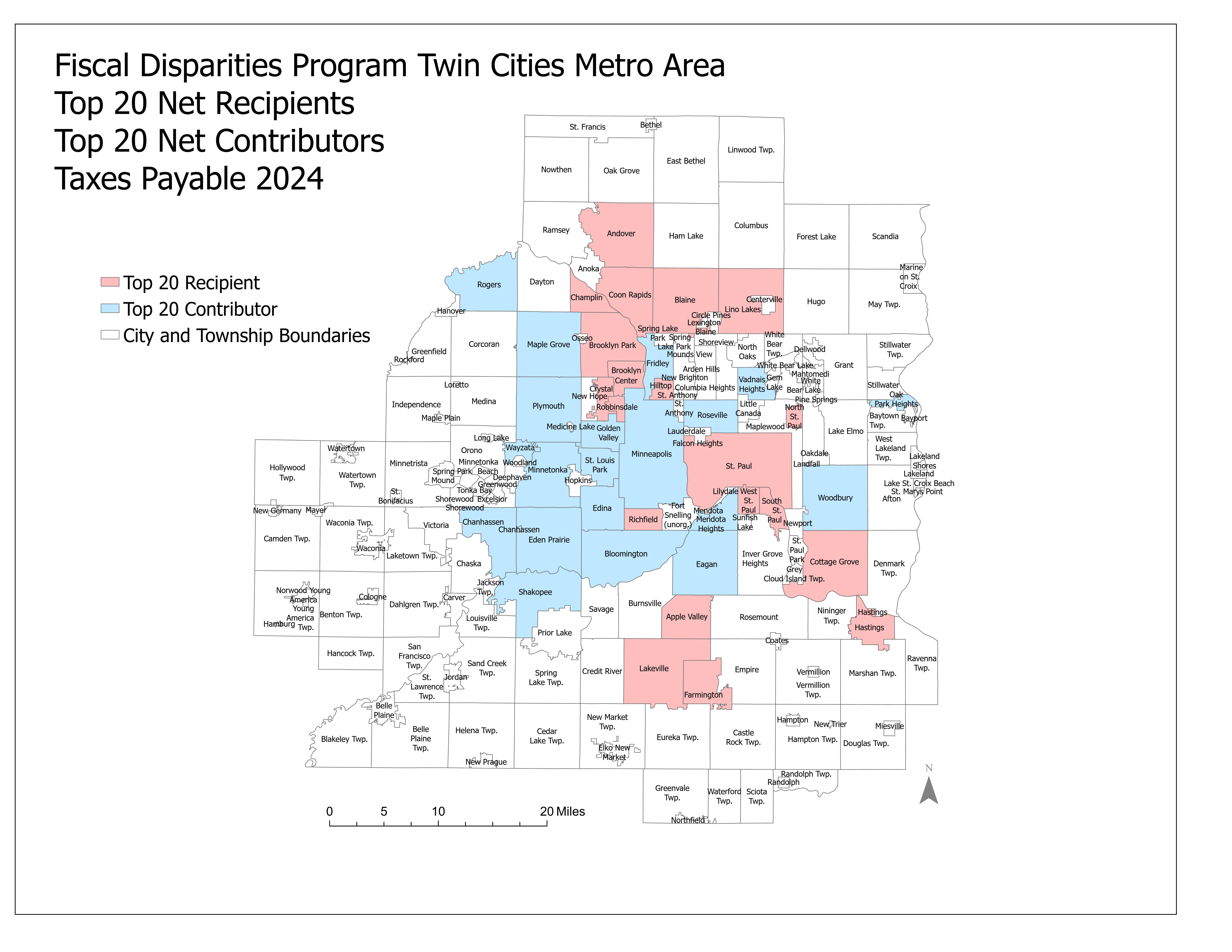 The Metropolitan Council analyzes tax-base sharing to share results and increase awareness of the program. Analysis also helps the Council and the Minnesota Department of Revenue determine which communities participate in the program, as required each year by state law. To be fair, communities whose planning and zoning policies exclude most commercial-industrial development, for reasons other than preserving agriculture, cannot participate in the program.
