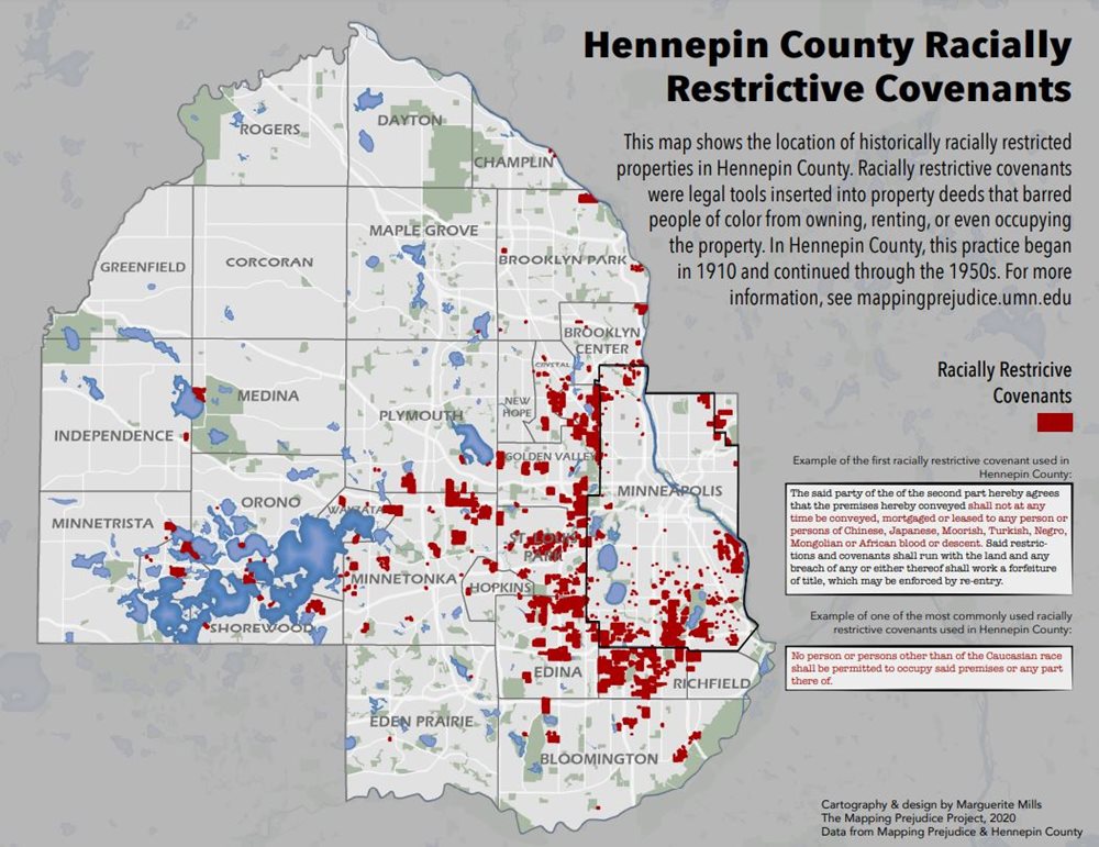 Communities in Hennepin County can review the University of Minnesota’s Mapping Prejudice Project to begin identifying racially restrictive covenants within their jurisdiction. Those outside of Hennepin County can reach out to the Mapping Prejudice Project to learn more about how to start identifying these covenants within their own community.