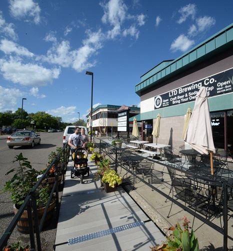 The City understands that starting small can result in larger changes. Hopkins had a pilot program to temporarily transform a few on-street parking spaces into miniature parks, or parklets, on a $200 budget. The pilot was a success and the City later adopted a policy to allow local businesses to use the on-street parking spaces as a sidewalk extension for seating areas in the summer.