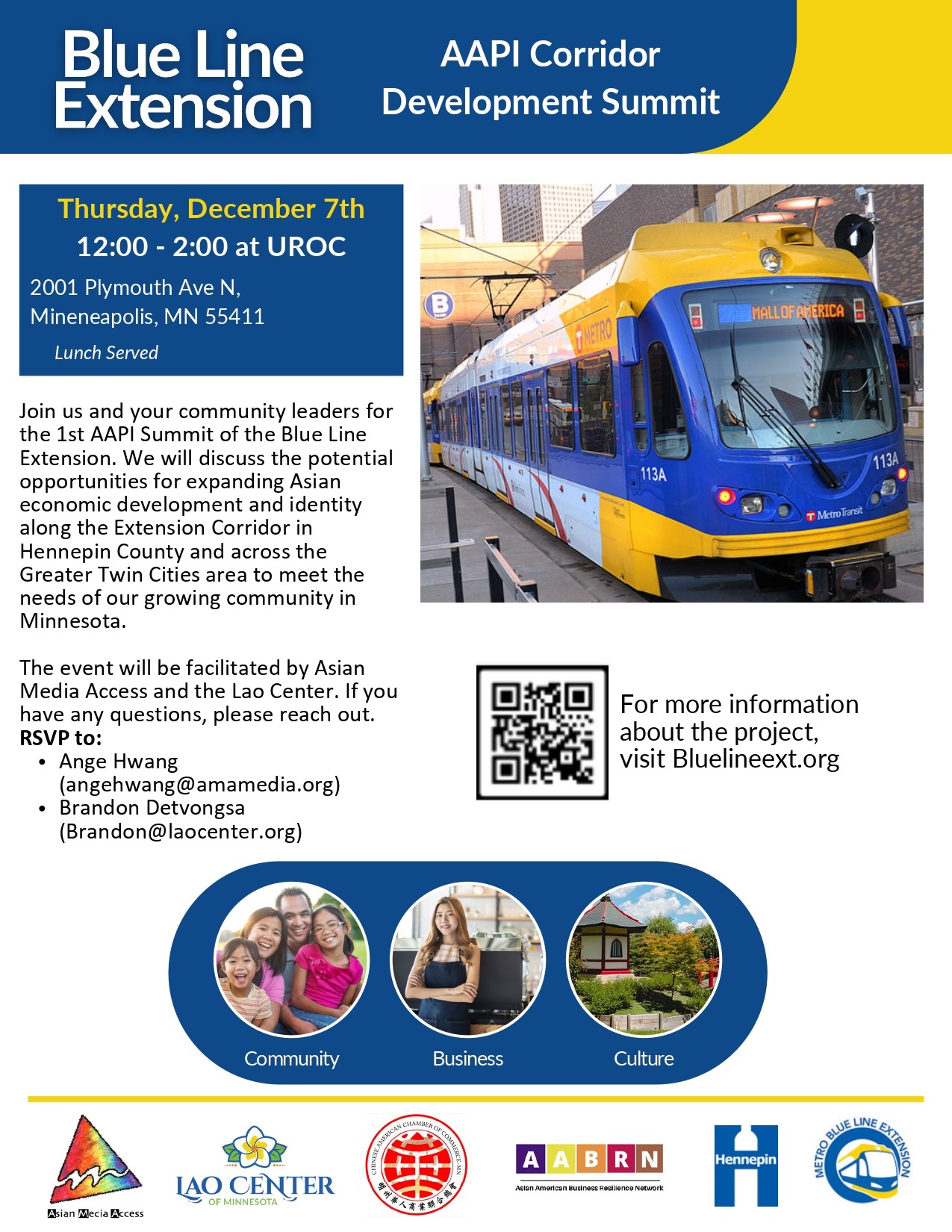 A public open house in Brooklyn Park on the design of West Broadway Avenue reconstruction that was added to the Blue Line Extension project. More information | Printable event flyer [PDF]