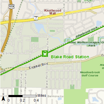 The planned Blake Road Station will be located north of the intersection of Blake Road and Excelsior Boulevard, in an area with abundant rental housing and several large employers including the Cargill corporate headquarters. The Blake School's Hopkins campus is just south of the proposed station site.