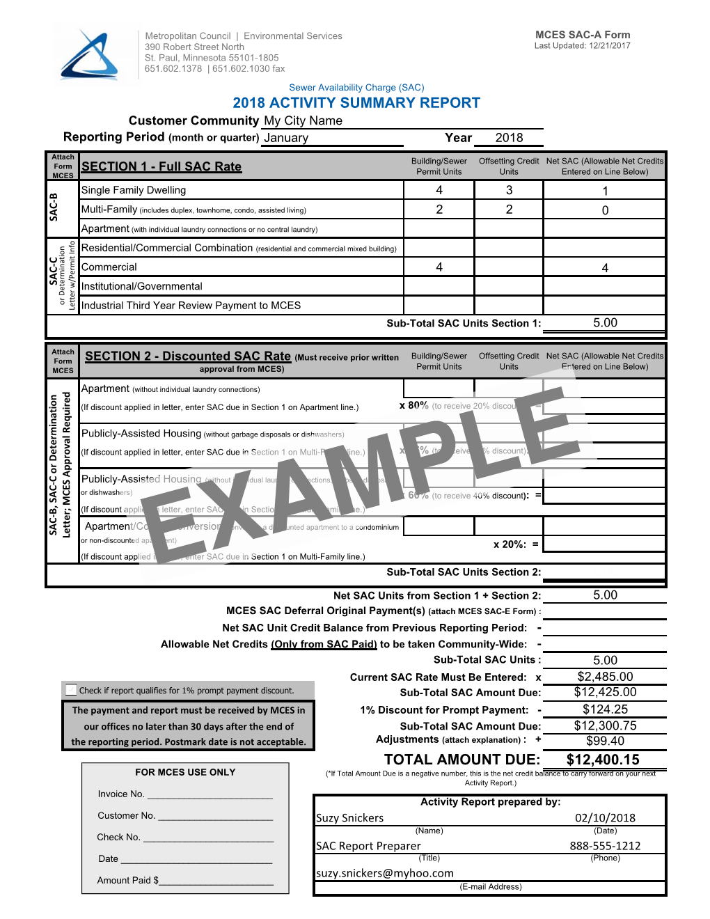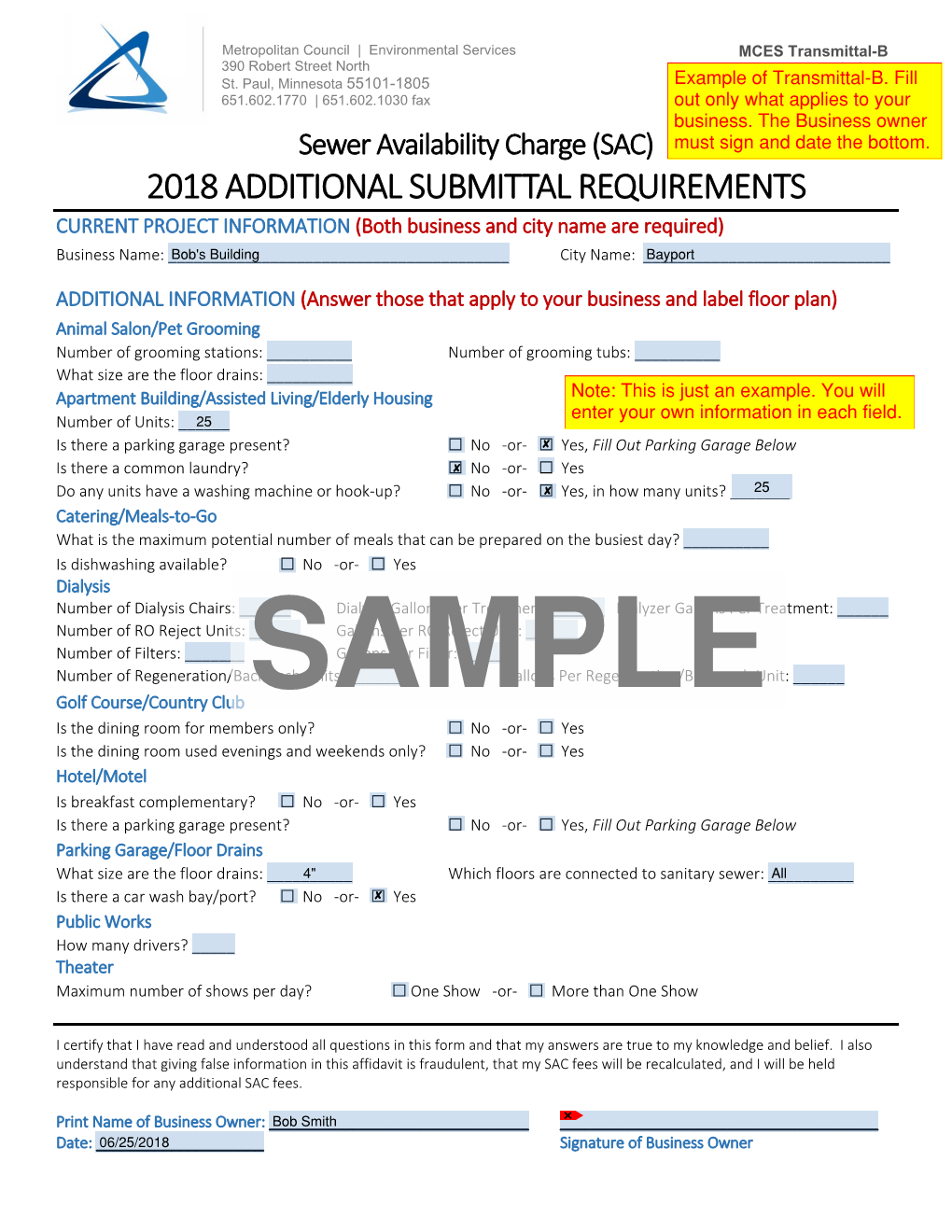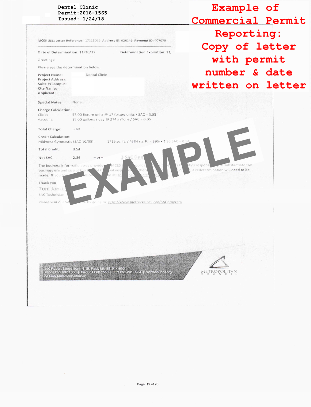 - Nonresidential demolitions must be accompanied by the SAC-C form or a copy of the MCES SAC Determination Letter