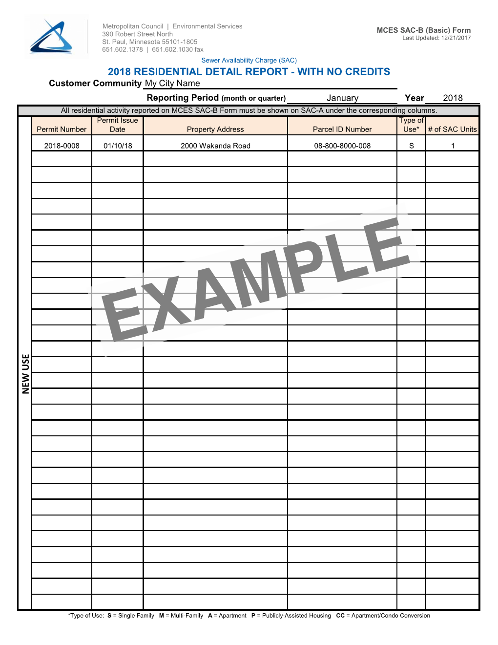 This form is required to document all new residential activity that was issued for the reporting period. There are two forms: