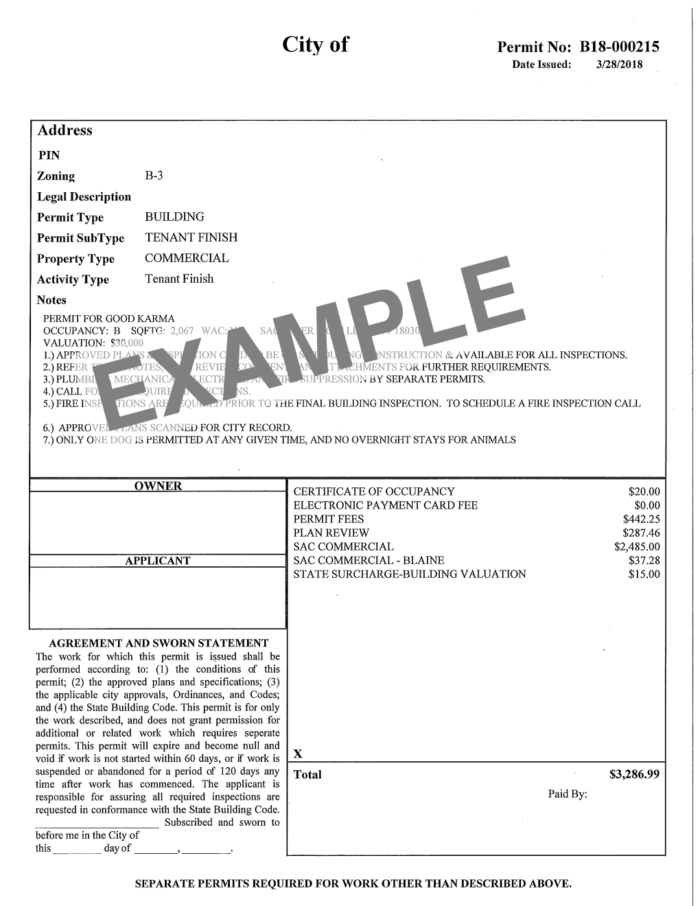 - Submit a copy of the SAC Determination Letter (192 KB, PNG image), and a copy of the building permit (195 KB, PNG image)