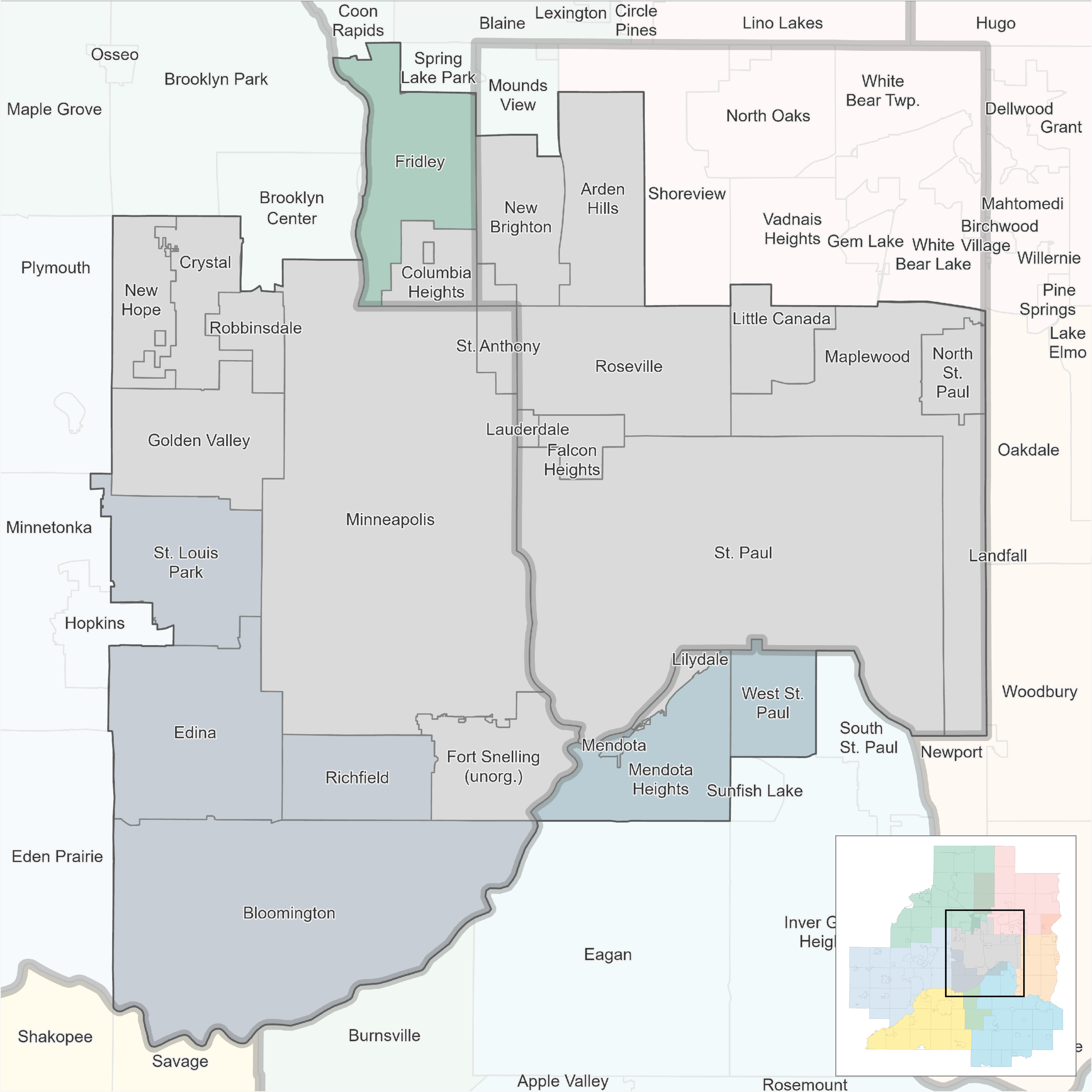 The Central Metro subregion group includes the cities of Minneapolis and Saint Paul, the communities served by those municipal community public water supply systems, and other surrounding communities. These communities are in the urban center of the region. This is the most highly developed part of the metro and the most densely populated.