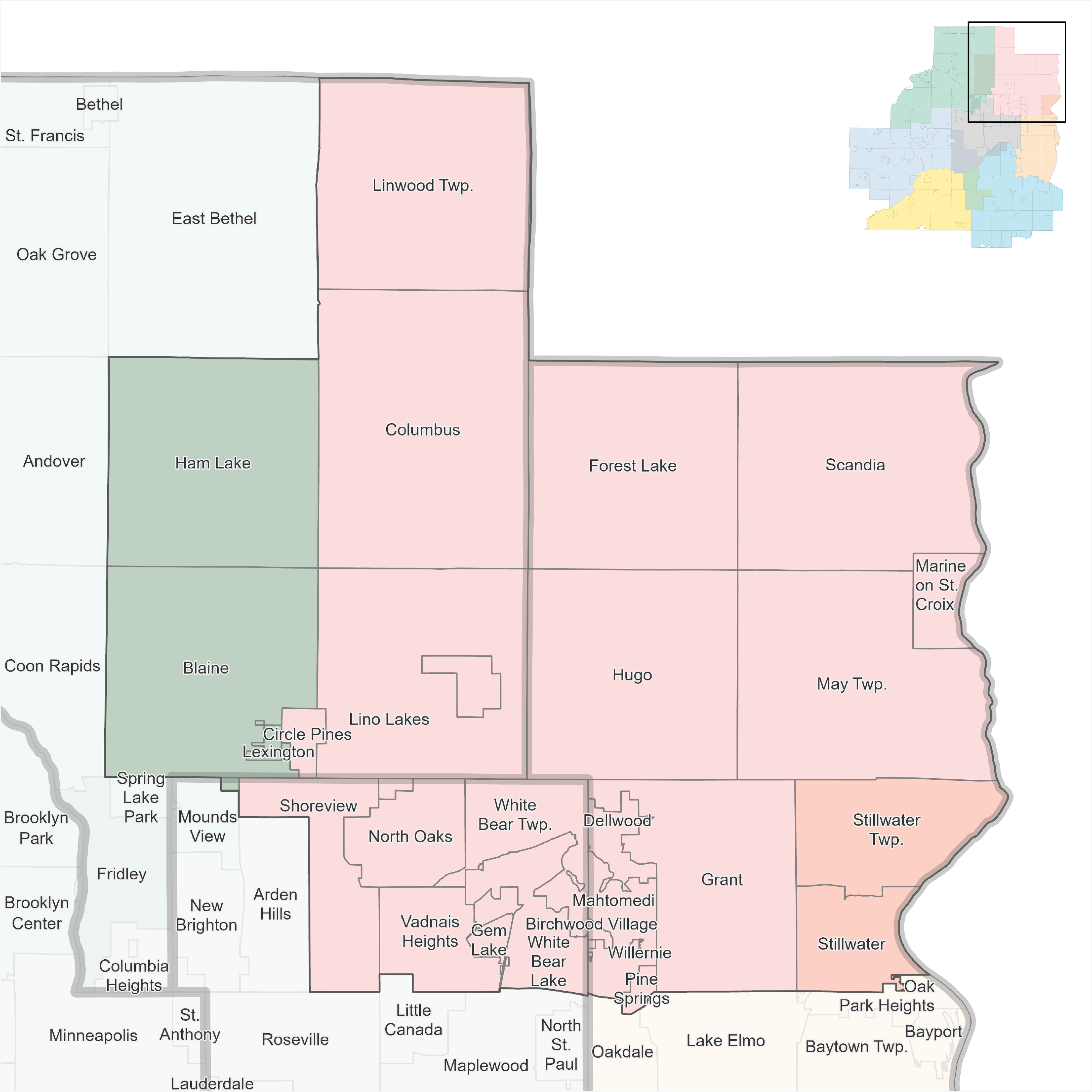 Communities in the Northeast Metro subregion are exclusively sourced by groundwater, mostly from the Prairie du Chien and Jordan aquifers. Most communities in this subregion operate municipal community public water supply systems that provide residents and businesses with water, but some communities do not have public water supply systems. In these communities, which are often more rural, residents get water from privately-owned and operated wells. Additionally, 25 of the 27 communities in the Northeast Metro subregion overlap with or are adjacent to land that has been identified as a Drinking Water Supply Management Area.
