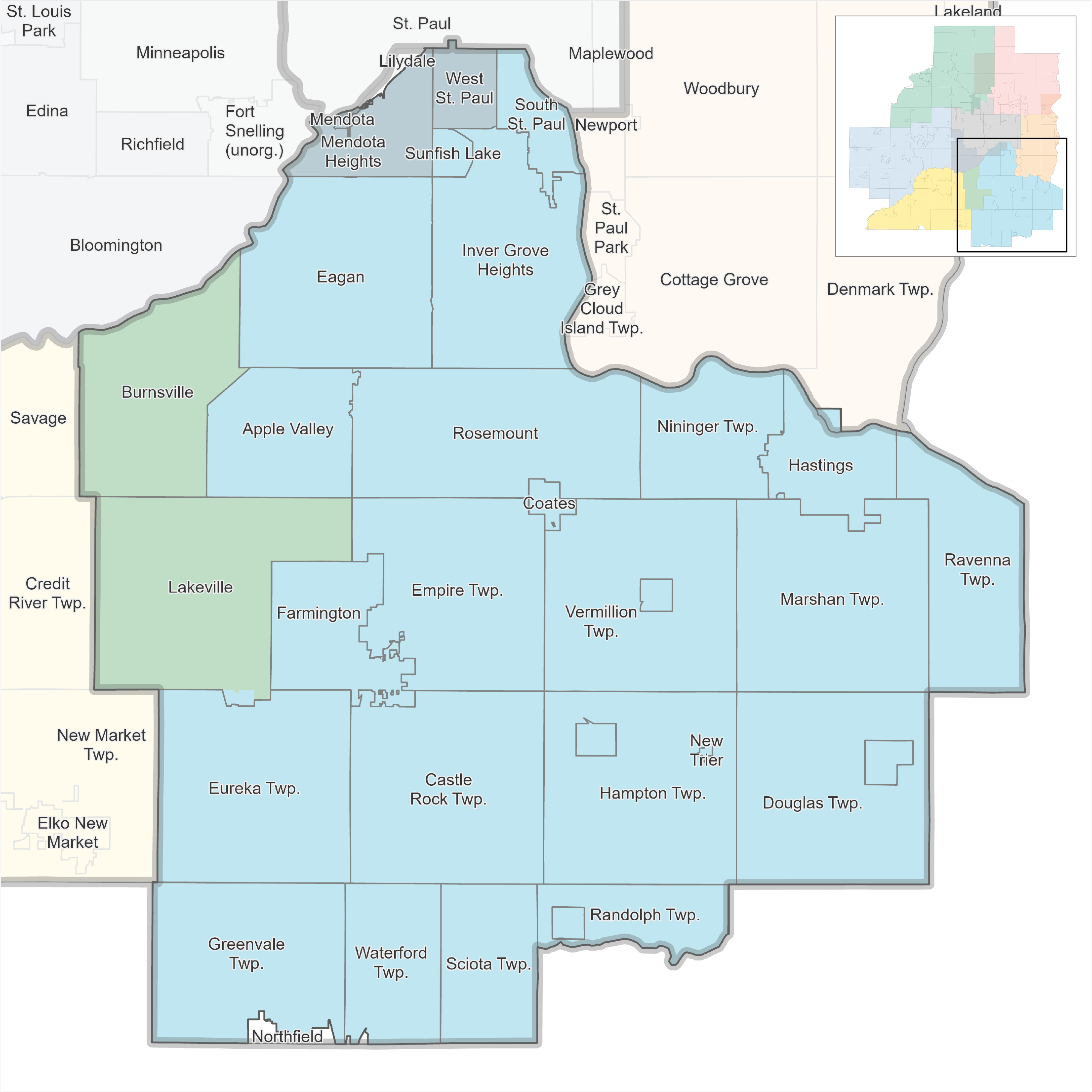 The Southeast Metro subregion spans communities in Dakota County, ranging from highly developed older suburbs, to newer suburbs that have experienced significant growth in the last 30 years, to rural agricultural communities dotted with smaller town centers. Generally, as you move from north to south across the county, density decreases and the landscape becomes more rural.