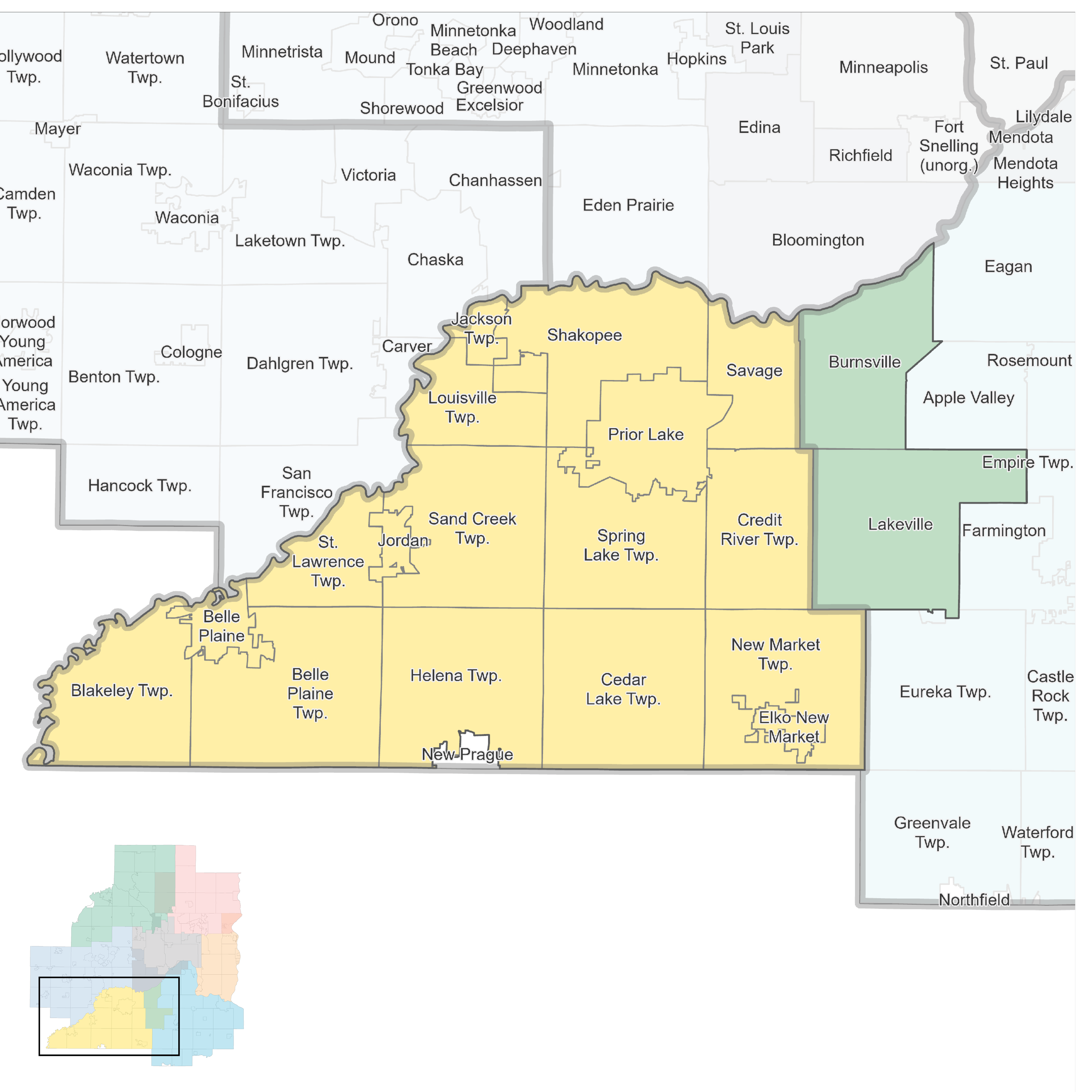 The Southwest Metro subregion spans Scott County bounded by Dakota County in the east and the Minnesota River to the north and west. This area includes the Shakopee Mdewakanton Sioux Community as well as growing suburban and rural communities. Water sustainability, as well as the increasing costs and demand pressures of ever-increasing growth, are challenges here as they are in many communities across the metro. Density in this part of the metro generally follows development and growth patterns, with most people being located in the north and east part of the county.
