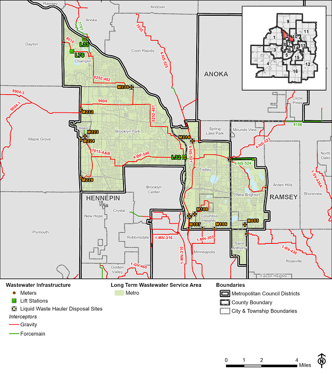 The interceptor systems in Blaine, Brooklyn Park, Champlin, Circle Pines, Coon Rapids, Forest Lake, Fridley, Hugo, Lexington, Lino Lakes, Maple Grove, Mounds View, Spring Lake Park, and other north area communities need rehabilitation and/or replacement. The project will rehabilitate existing interceptor facilities, including gravity sewers, forcemains, lift stations, and meter stations.